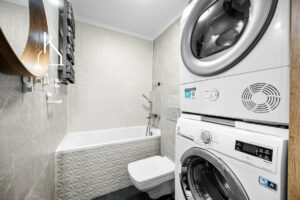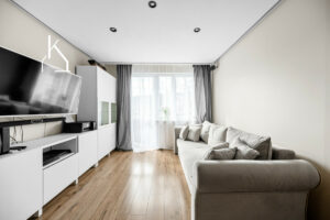 Dzięki dwustronnej ekspozycji mieszkanie jest dobrze doświetlone o każdej porze dnia – poranne światło wpada do sypialni, a popołudniowe do salonu.