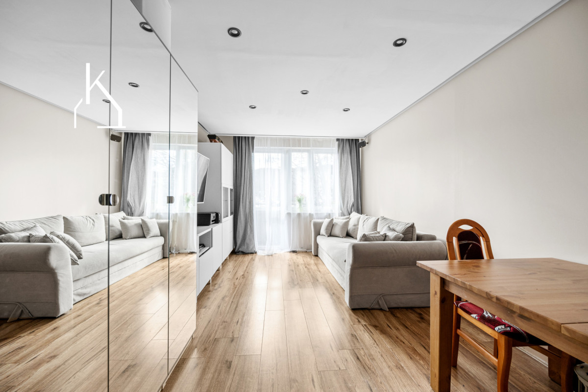 Mieszkanie jest dwustronne, dzięki czemu przez cały dzień pozostaje jasne i dobrze doświetlone (słońce wschodzi od strony sypialni, a zachodzi od strony salonu).