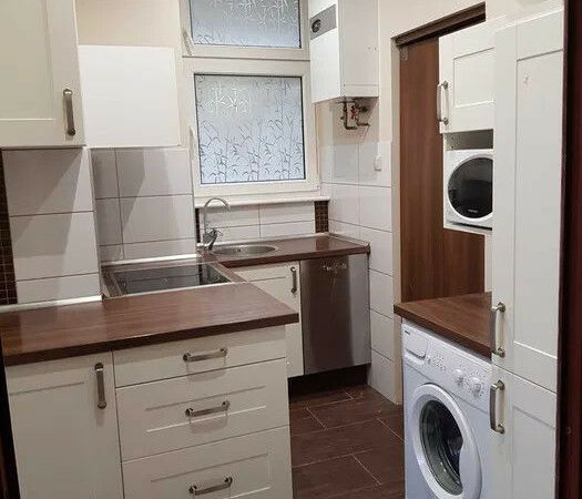* z pełnym wyposażeniem (szafki, piekarnik, płyta grzewcza, lodówka, mikrofalówka, pralka)