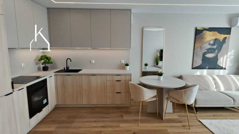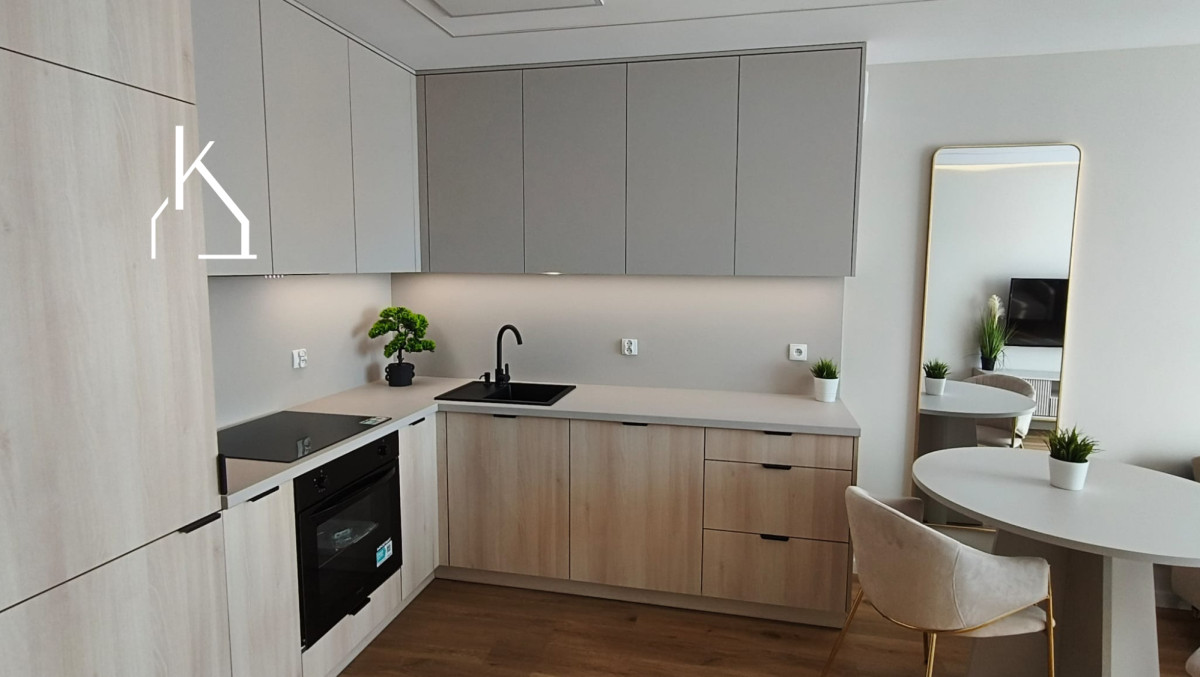 Wyposażenie w cenie: meble w zabudowie, kuchnia na wymiar, AGD (zmywarka, lodówka, piekarnik, kuchenka), telewizor, klimatyzacja