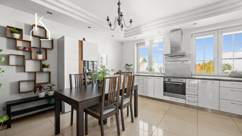 * Przestronna kuchnia z dużą ilością blatów, miejscem do przechowywania i dużym stołem jadalnianym dla całej rodziny.