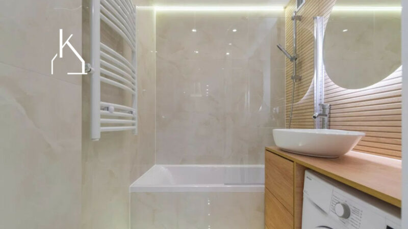 W pokojach i korytarzu zastosowano panele o najwyższej klasie ścieralności, natomiast łazienka została wykończona płytkami.
